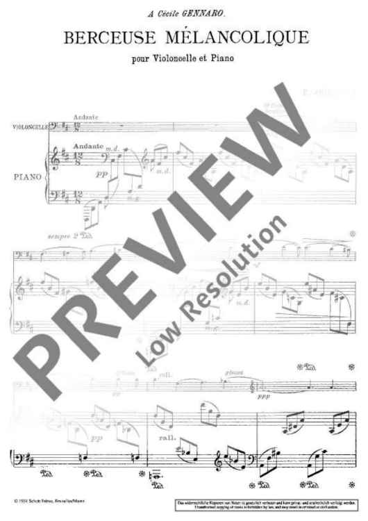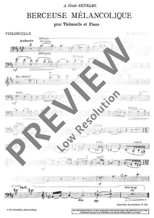 Digital Sheet Music for Berceuse mélancolique by Fernand Goeyens scored for Cello And Piano; id:485309