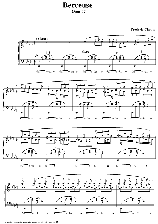 Digital Sheet Music for Berceuse, Op. 57 by Frederic Chopin scored for Piano Solo; id:94859