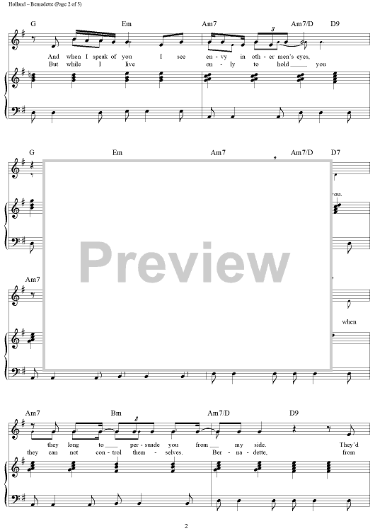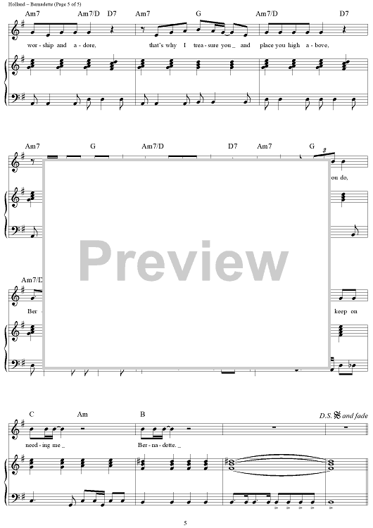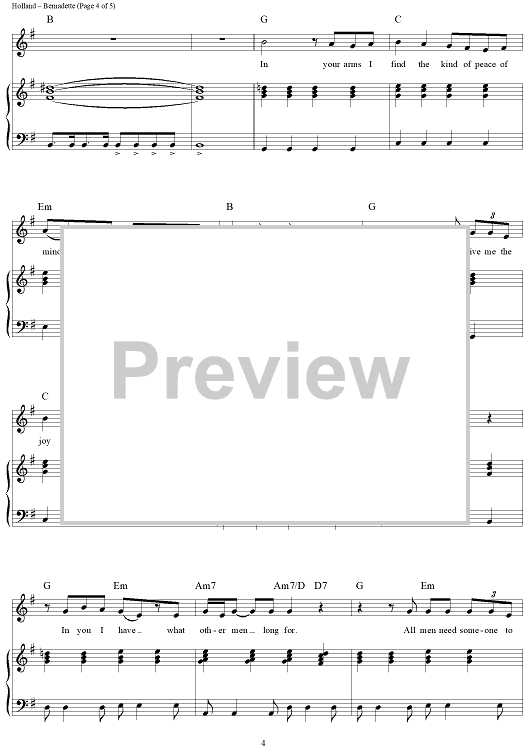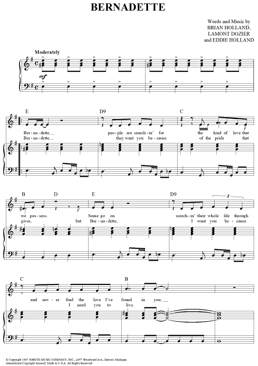 Digital Sheet Music for Bernadette by Four Tops, Lamont Dozier, Brian Holland, Eddie Holland scored for Piano/Vocal/Chords; id:364043