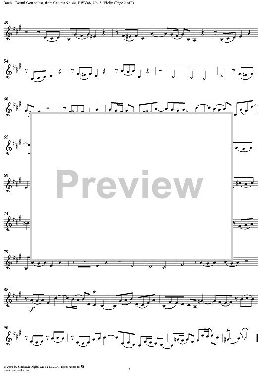 Digital Sheet Music for "Beruft Gott selbst", Duet, No. 5 from Cantata No. 88: "Siehe, ich will viel Fischer aussenden" - Violin by Johann Sebastian Bach scored for Soprano, Alto, Violin and Piano or Organ; id:304065
