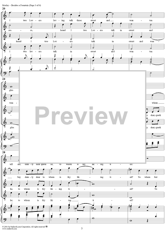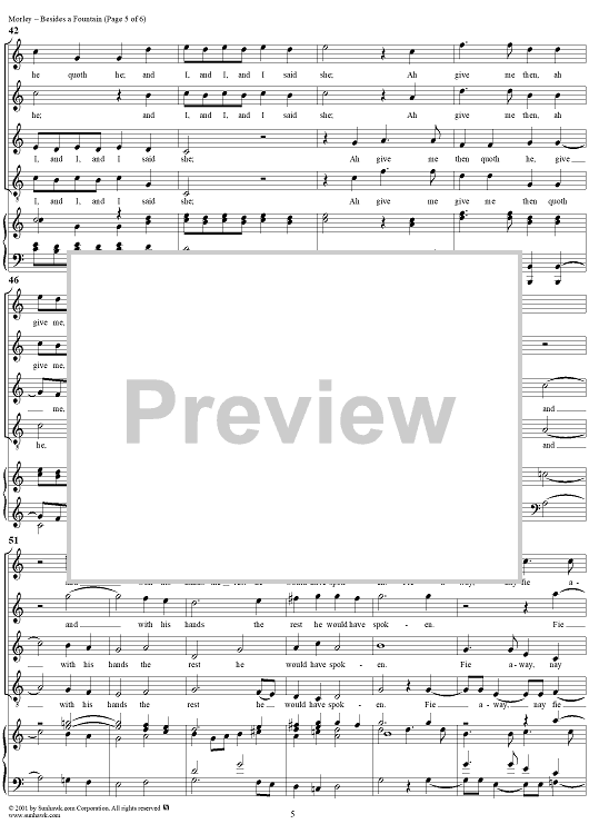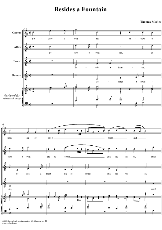 Digital Sheet Music for Besides a Fountain by Thomas Morley scored for Four-part Mixed Chorus/Piano; id:259773