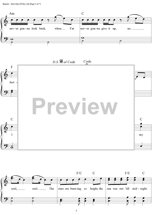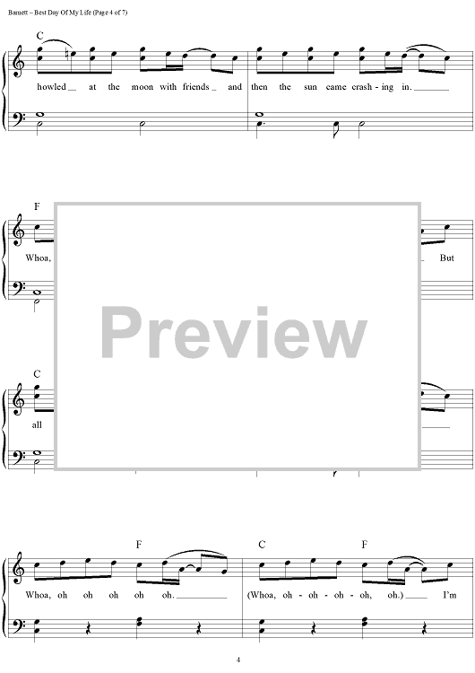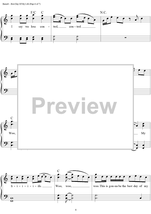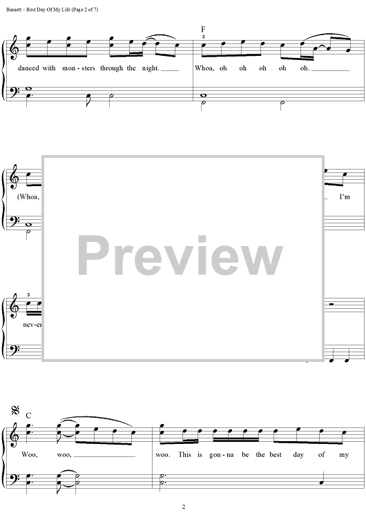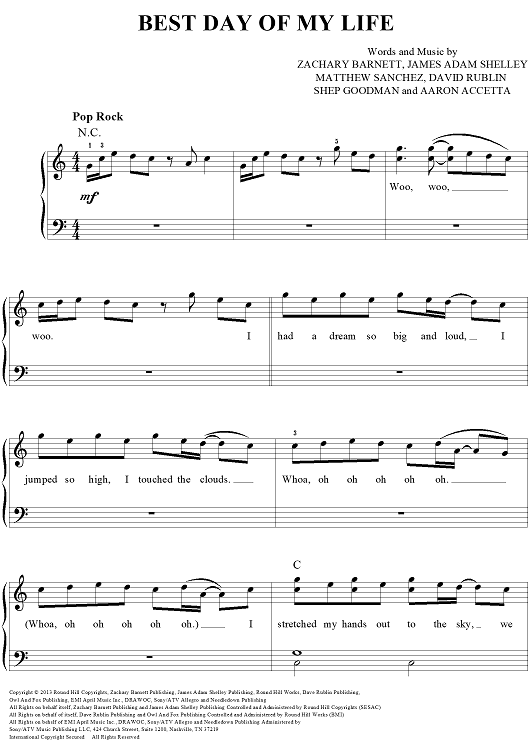Digital Sheet Music for Best Day of My Life by Shep Goodman, Zachary Barnett, James Adam Shelley, Matthew Sanchez, David Rublin, Aaron Accetta, American Authors scored for Easy Piano/Vocal/Chords; id:447328