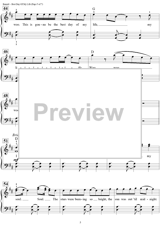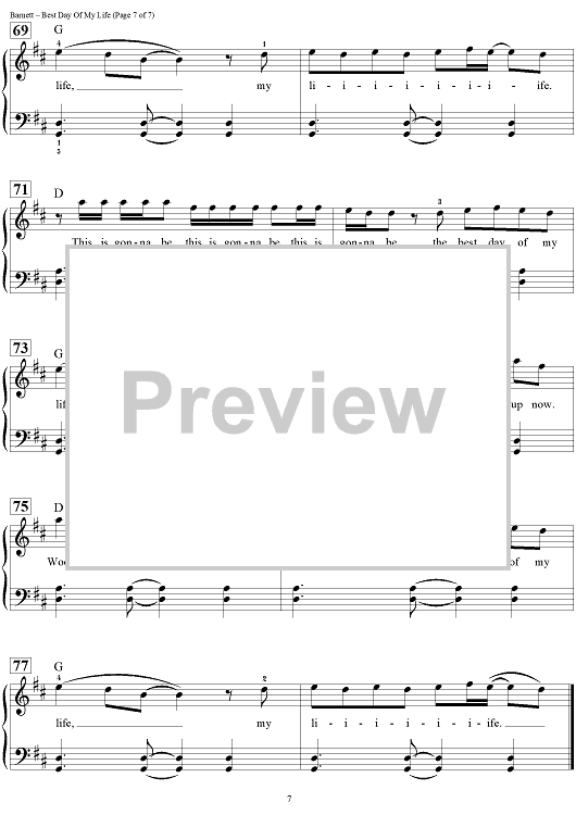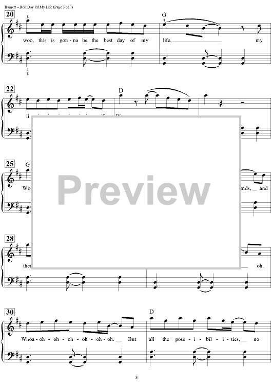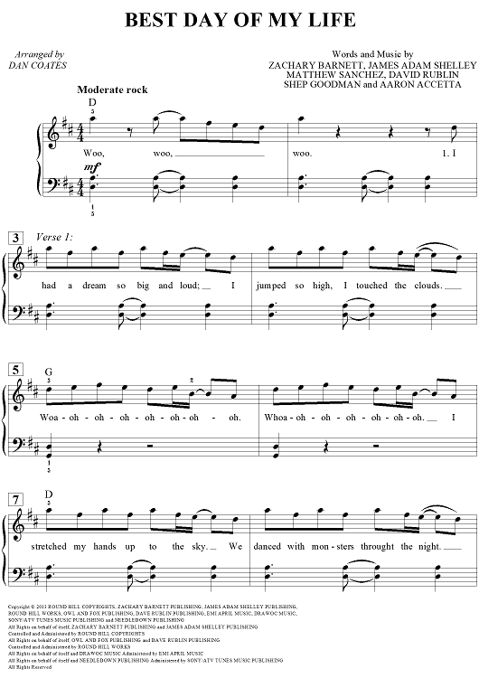 Digital Sheet Music for Best Day of My Life by Dan Coates, Shep Goodman, Zachary Barnett, James Adam Shelley, Matthew Sanchez, David Rublin, Aaron Accetta, American Authors scored for Easy Piano/Vocal/Chords; id:453449