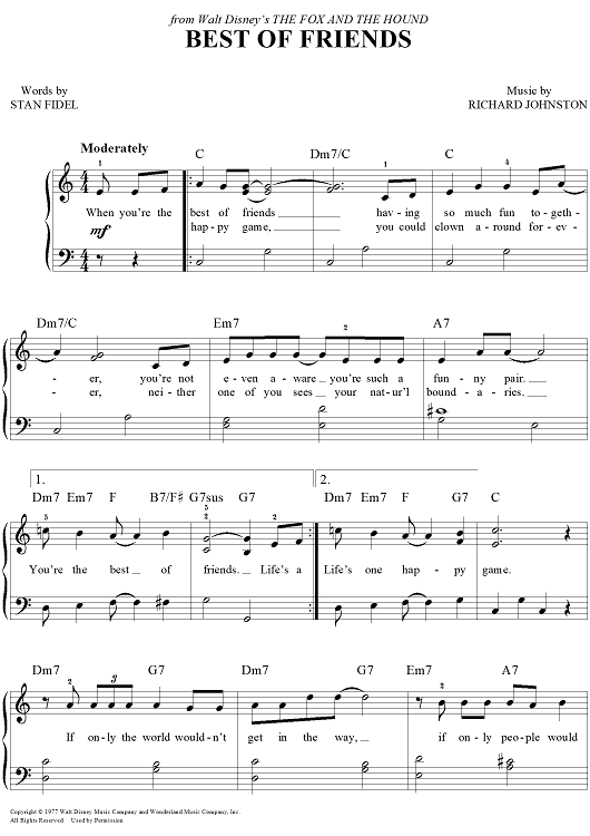 Digital Sheet Music for Best Of Friends by Stan Fidel, Richard Johnston scored for Easy Piano/Vocal/Chords; id:448458