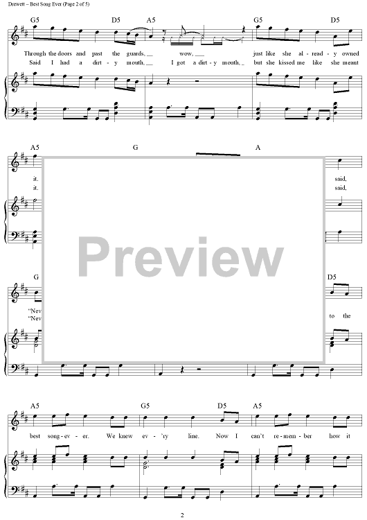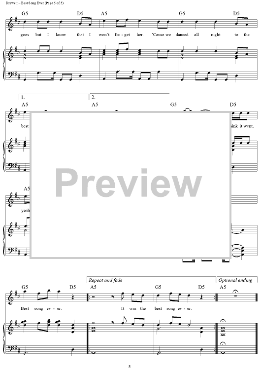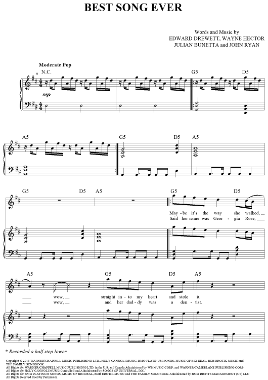 Digital Sheet Music for Best Song Ever by Wayne Hector, Ed Drewett, One Direction, Julian Bunetta, John Ryan scored for Piano/Vocal/Chords; id:444908