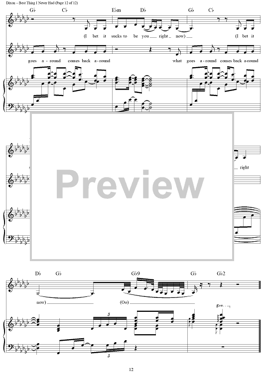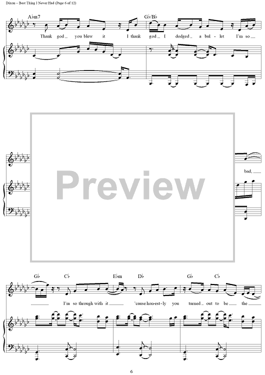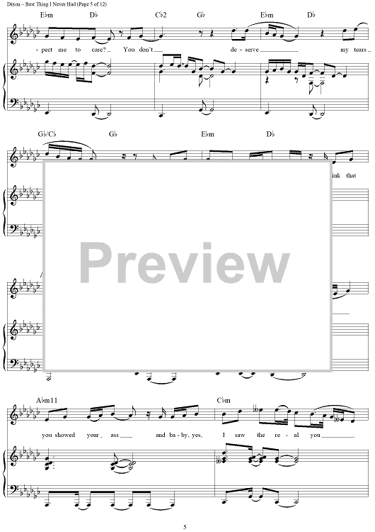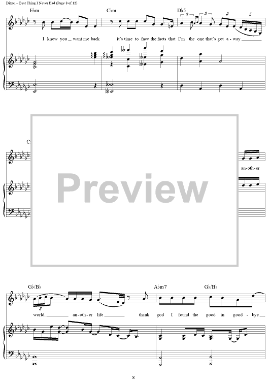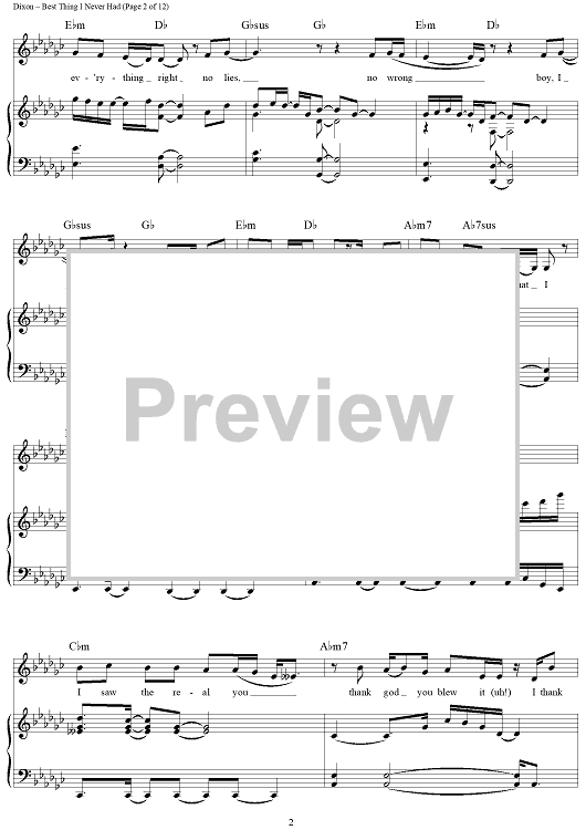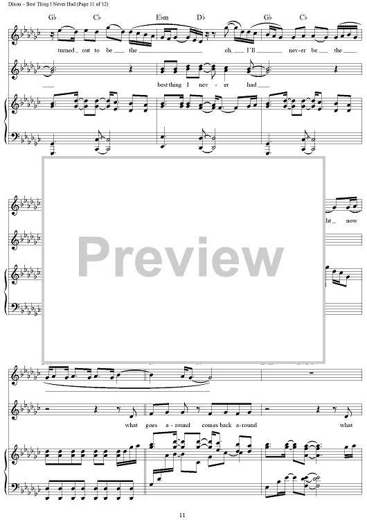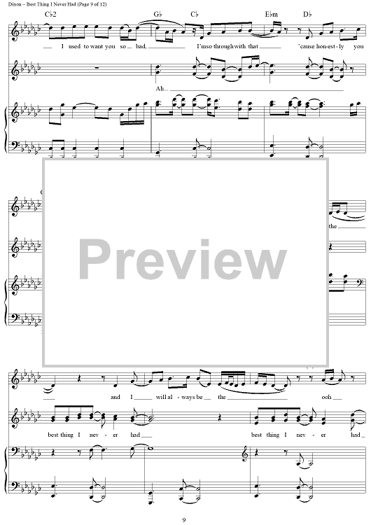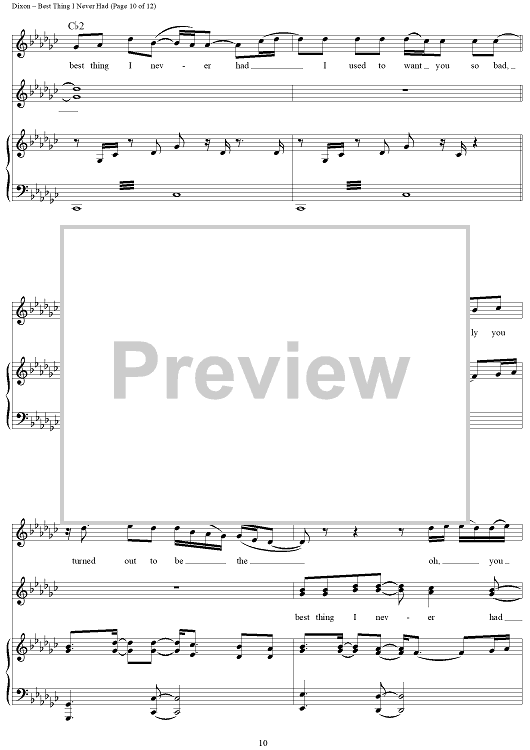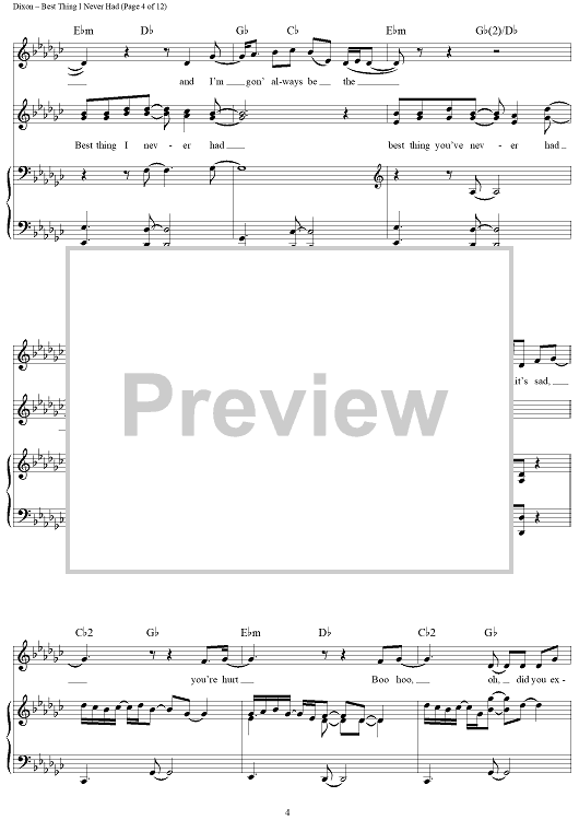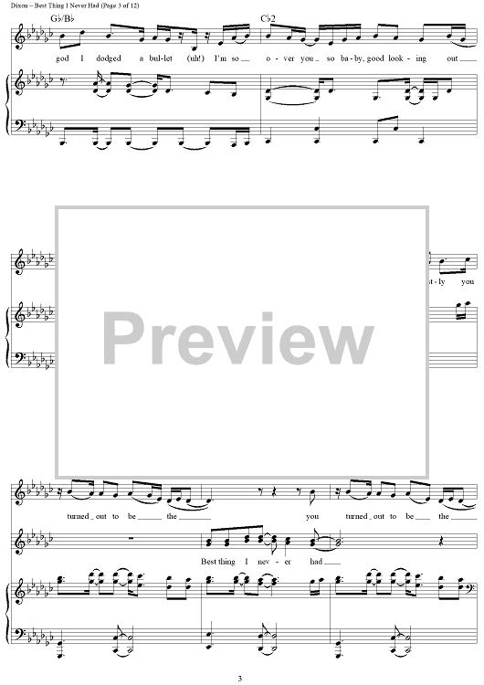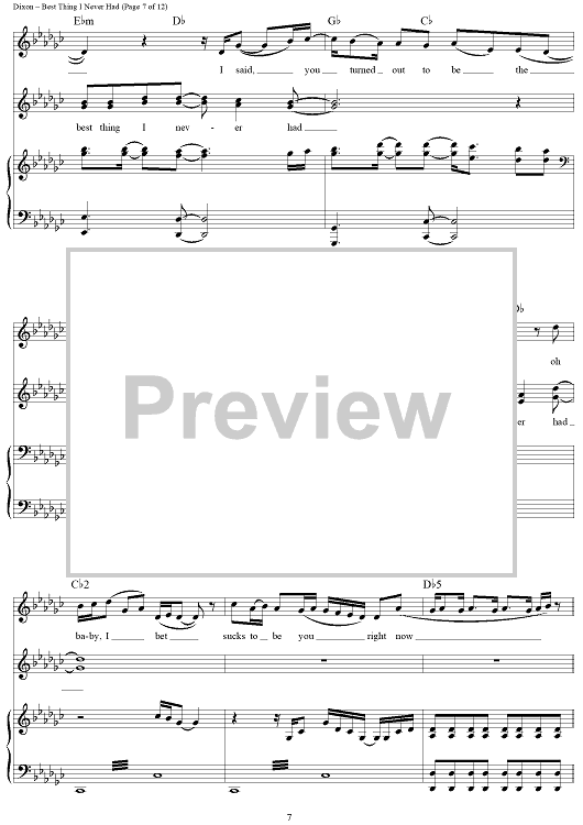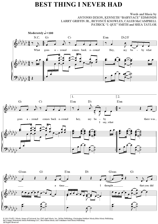 Digital Sheet Music for Best Thing I Never Had by Beyonce, Babyface, Antonio Dixon, Patrick Smith, Larry Griffin, Jr., Caleb McCampbell, Shea Taylor scored for Piano/Vocal/Chords; id:422410