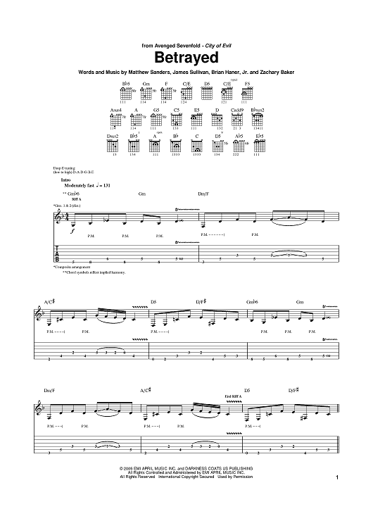 "Betrayed" Sheet Music by Avenged Sevenfold