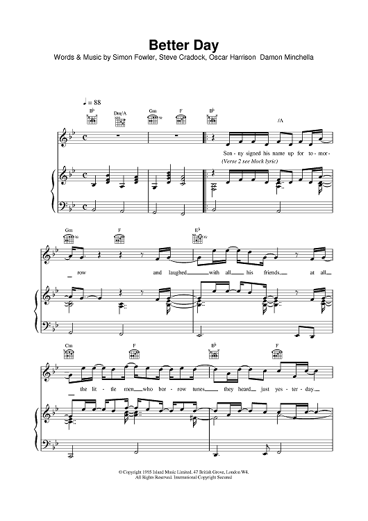 Digital Sheet Music for Better Day by Steve Cradock, Simon Fowler, Oscar Harrison, Ocean Colour Scene scored for Piano/Vocal/Chords; id:379848