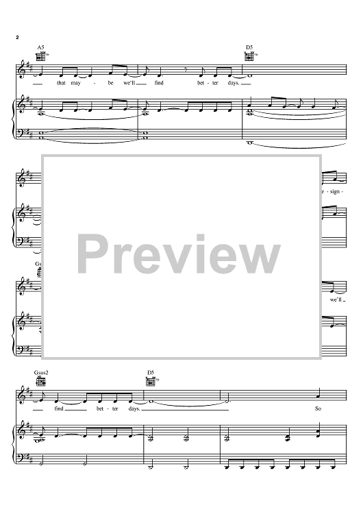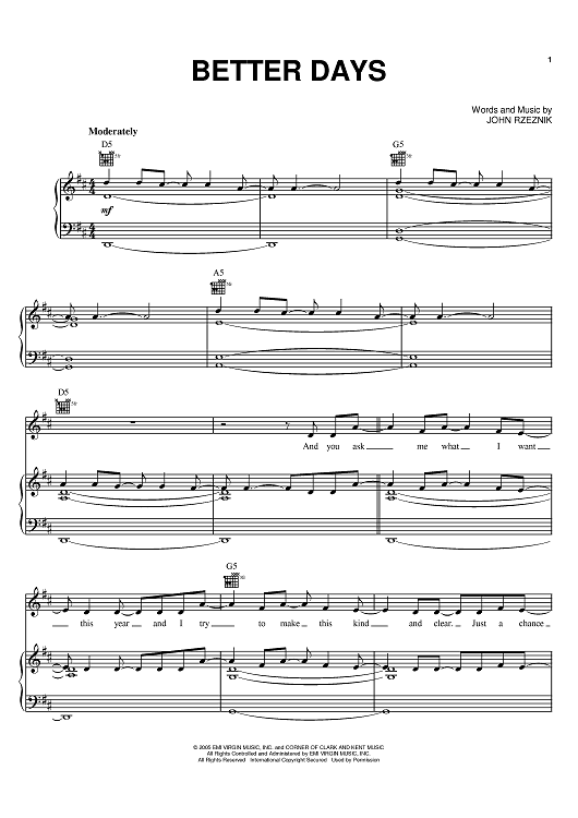 Digital Sheet Music for Better Days by John Rzeznik, Goo Goo Dolls scored for Piano/Vocal/Chords; id:387380