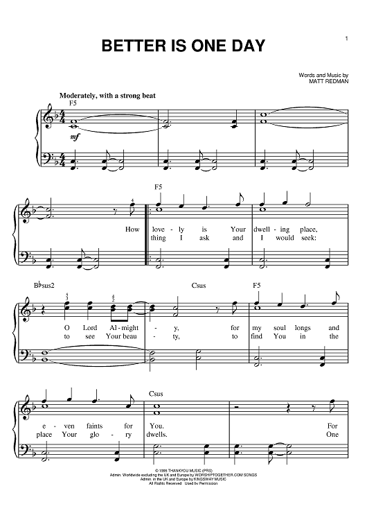 Digital Sheet Music for Better Is One Day by Matt Redman, Rebecca St. James, Passion Band scored for Easy Piano; id:379442
