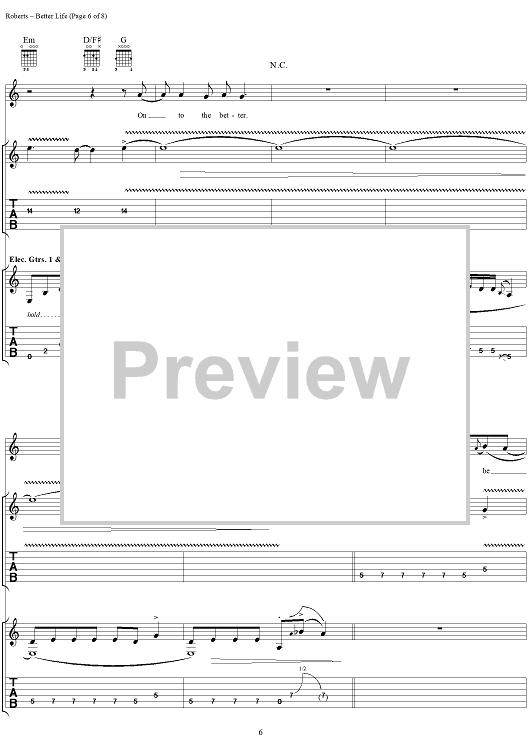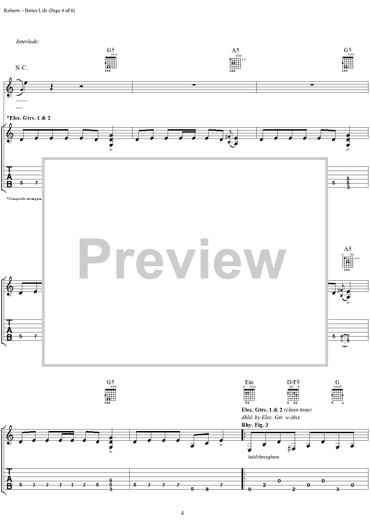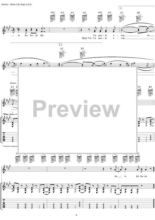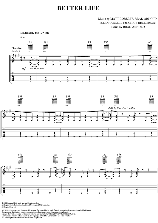 Digital Sheet Music for Better Life by 3 Doors Down, Matt Roberts, Brad Arnold, Todd Harrell, Chris Henderson scored for Guitar Tab/Vocal; id:283928