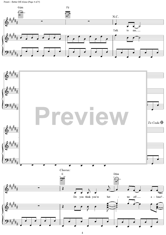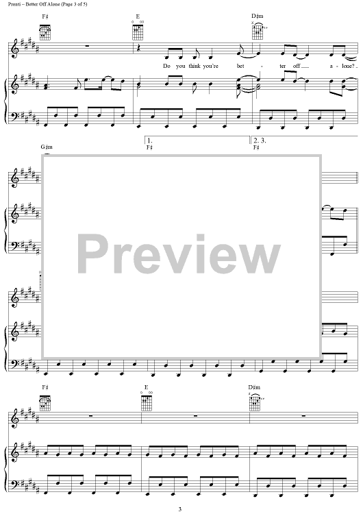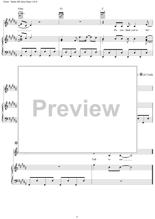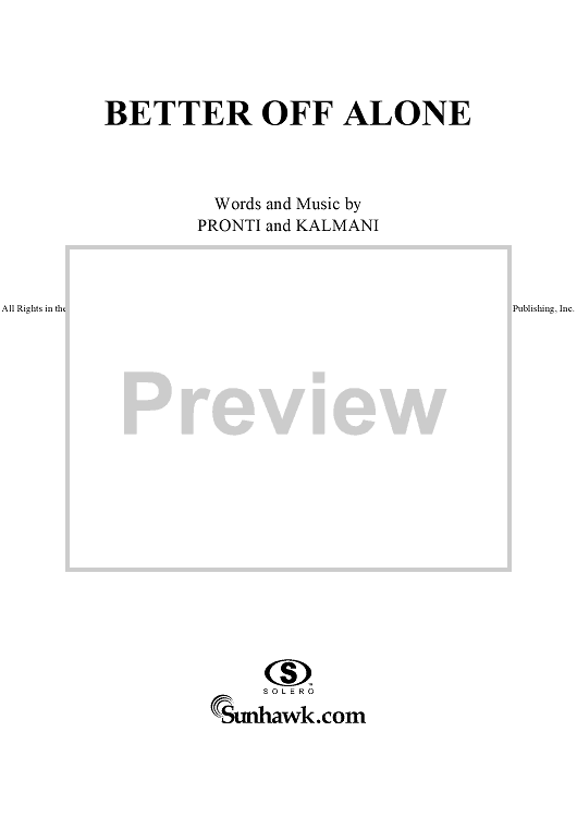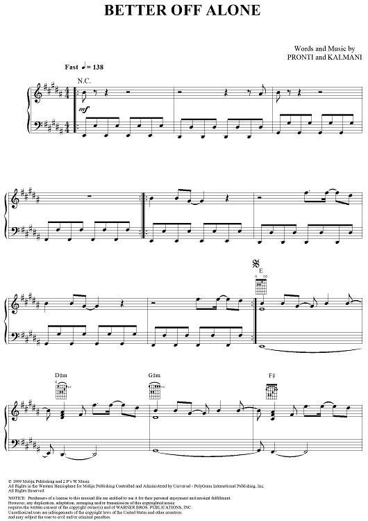 Digital Sheet Music for Better Off Alone by Pronti, Kalmani, Alice Deejay scored for Piano/Vocal/Chords; id:236643