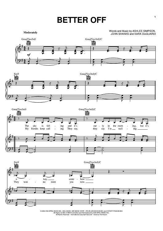 Digital Sheet Music for Better Off by John Shanks, Kara DioGuardi, Ashlee Simpson scored for Piano/Vocal/Chords; id:379559