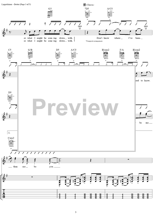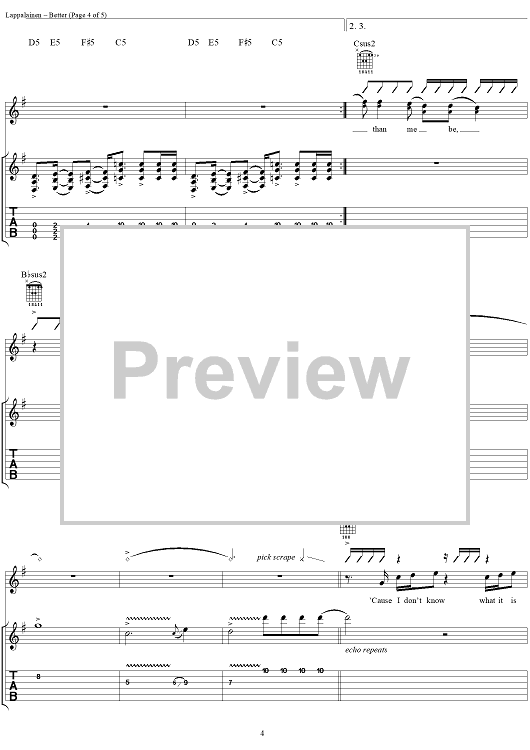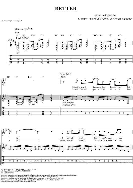 Digital Sheet Music for Better by Hoobastank, Markku Lappalainen, Douglas Robb scored for Guitar Tab/Vocal; id:290092
