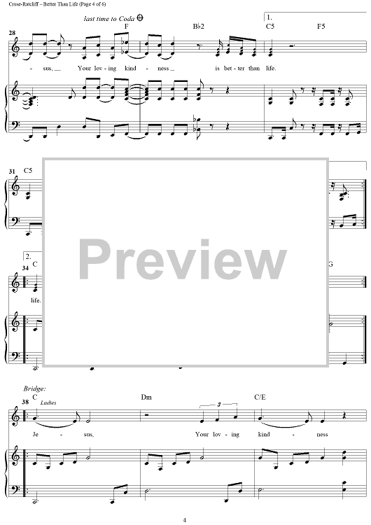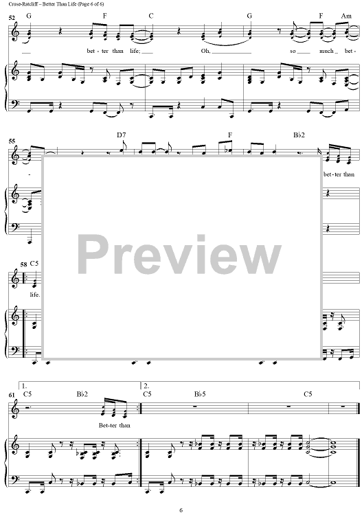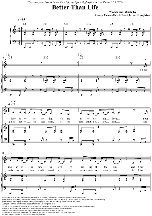 Digital Sheet Music for Better Than Life by Israel Houghton, Cindy Cruse-Ratcliff scored for Piano/Vocal/Chords; id:314364