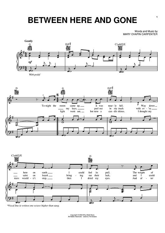 Digital Sheet Music for Between Here And Gone by Mary Chapin Carpenter scored for Piano/Vocal/Chords; id:379307