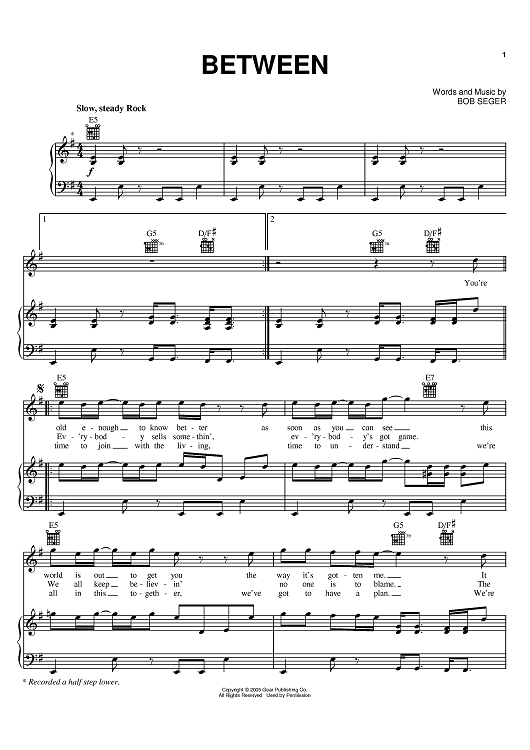 Digital Sheet Music for Between by Bob Seger scored for Piano/Vocal/Chords; id:397714