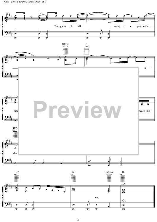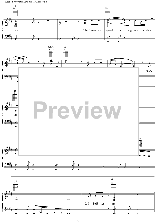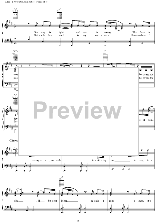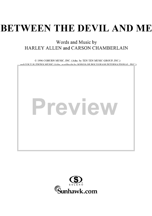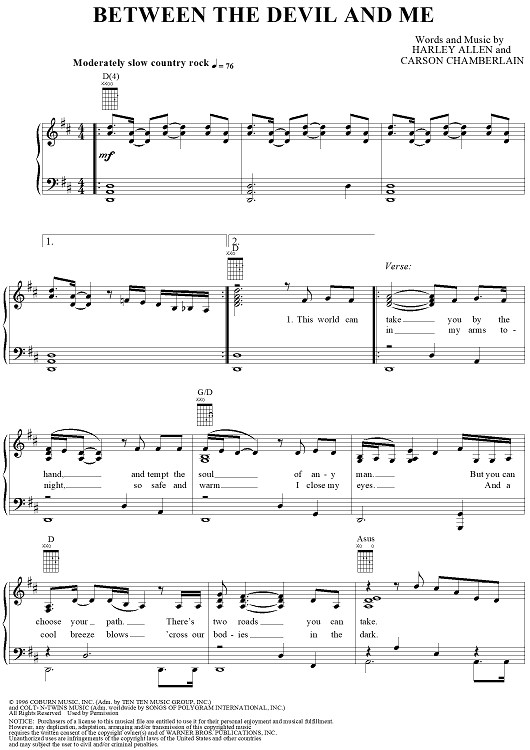 Digital Sheet Music for Between the Devil and Me by Carson Chamberlain, Harley Allen, Al Jackson Jr scored for Piano/Vocal/Chords; id:112019