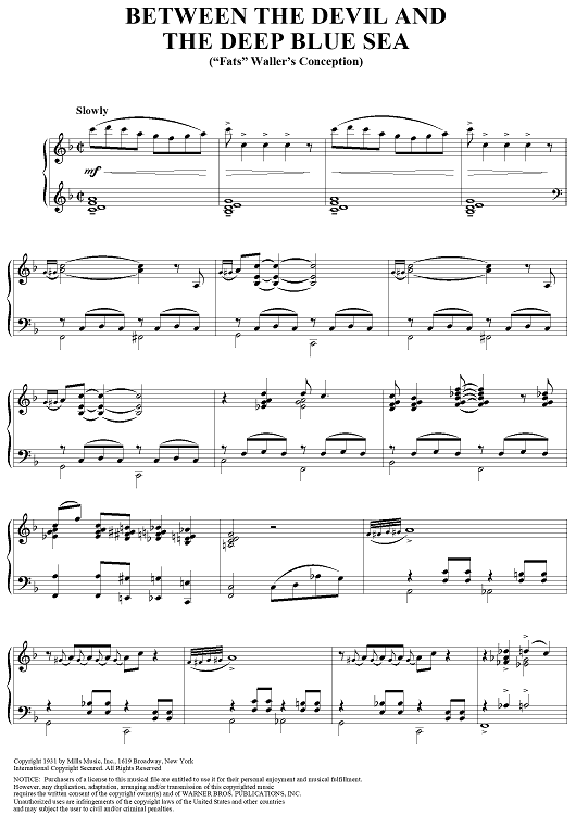 "Between the Devil and the Deep Blue Sea (''Fats'' Waller's Conception)" Sheet Music by Fats Waller