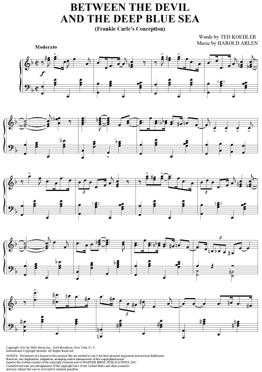 "Between the Devil and the Deep Blue Sea" Sheet Music by Frankie Carle