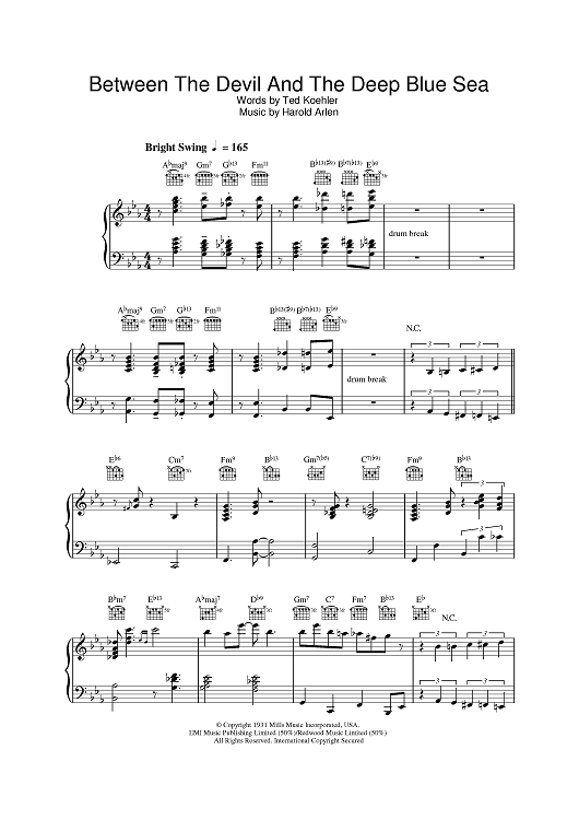 Digital Sheet Music for Between The Devil And The Deep Blue Sea by Harold Arlen, Ted Koehler, Diana Krall scored for Piano; id:385383