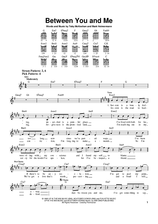 Digital Sheet Music for Between You And Me by DC Talk, Mark Heimermann, tobyMac scored for Easy Guitar; id:398204