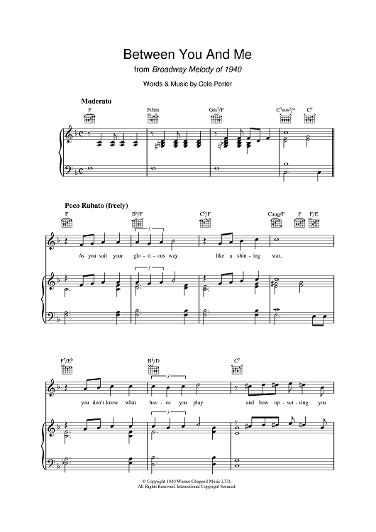Digital Sheet Music for Between You And Me by Cole Porter scored for Piano/Vocal/Chords; id:402270