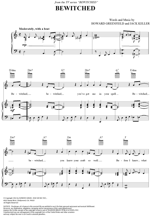 Digital Sheet Music for Bewitched by Howard Greenfield, Jack Keller scored for Piano/Vocal/Chords; id:116518