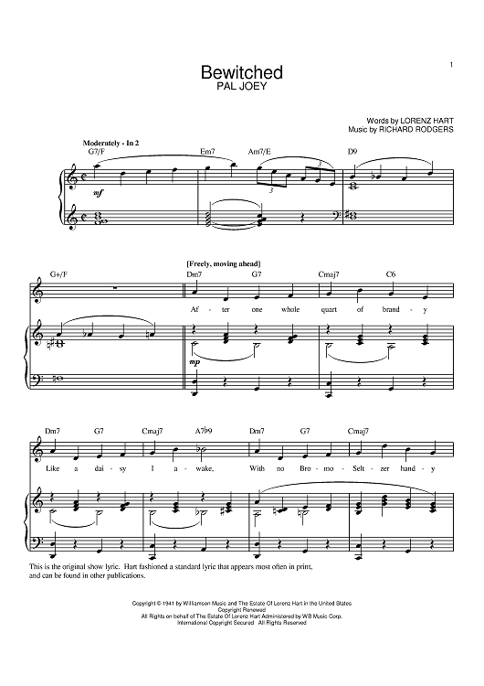 Digital Sheet Music for Bewitched by Richard Rodgers, Lorenz Hart scored for Piano/Vocal/Chords; id:397176