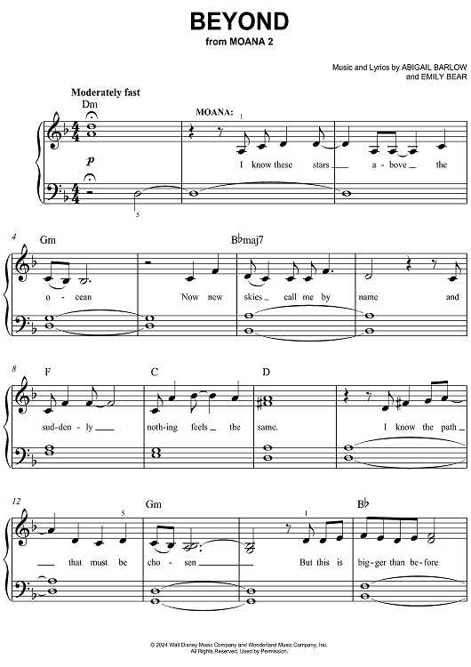 "Beyond (from Moana 2)" Sheet Music by Emily Bear