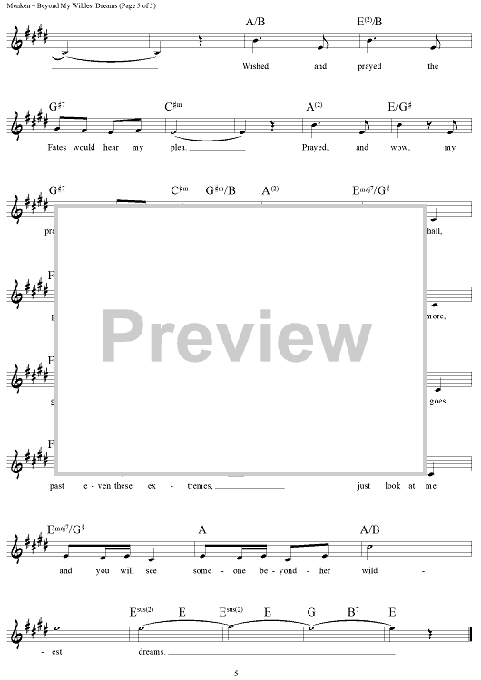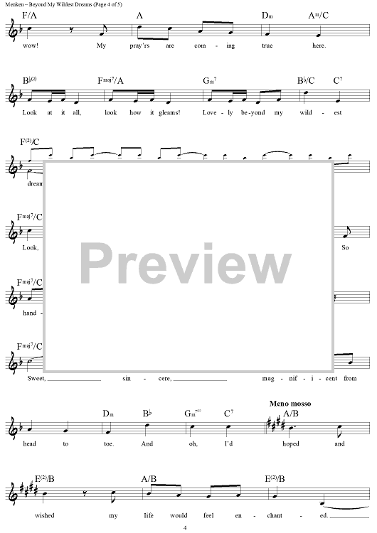Digital Sheet Music for Beyond My Wildest Dreams by Alan Menken, Glenn Slater scored for Lead Sheet; id:439635