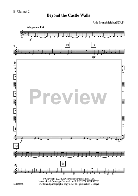 Digital Sheet Music for Beyond the Castle Walls - Bb Clarinet 2 by Aric Branchfield scored for Concert Band; id:506999
