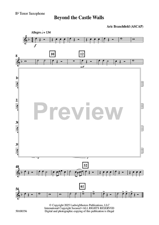 "Beyond the Castle Walls - Bb Tenor Saxophone" Sheet Music by Aric Branchfield