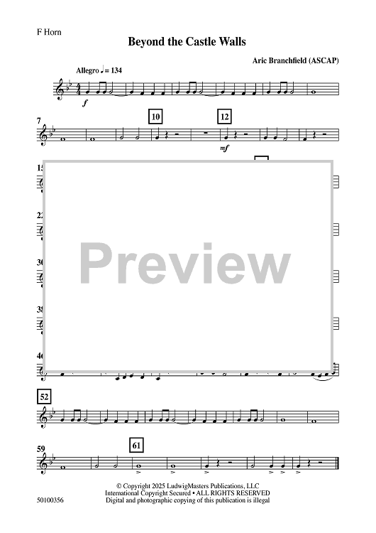 Digital Sheet Music for Beyond the Castle Walls - F Horn by Aric Branchfield scored for Concert Band; id:507008