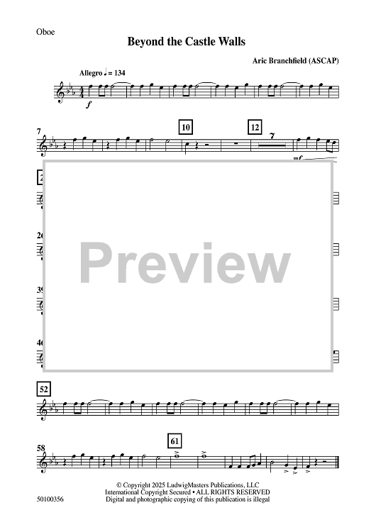 Digital Sheet Music for Beyond the Castle Walls - Oboe by Aric Branchfield scored for Concert Band; id:506996