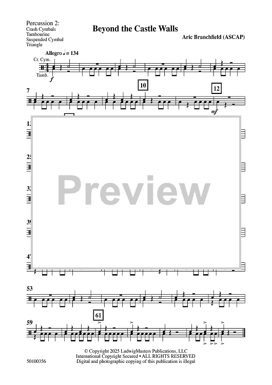 Digital Sheet Music for Beyond the Castle Walls - Percussion 2 by Aric Branchfield scored for Concert Band; id:507013