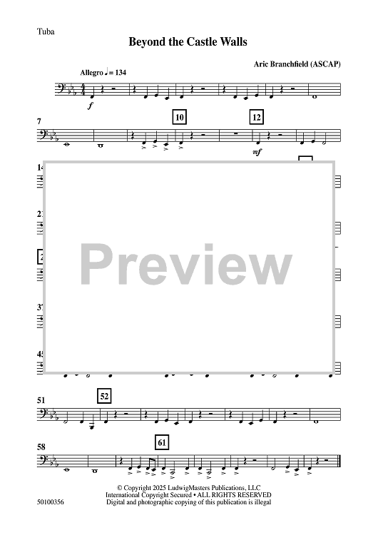 Digital Sheet Music for Beyond the Castle Walls - Tuba by Aric Branchfield scored for Concert Band; id:507010