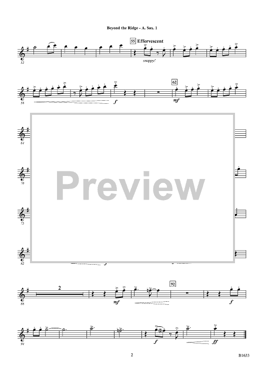 Digital Sheet Music for Beyond the Ridge - Eb Alto Sax 1 by Chris Ozley scored for Concert Band; id:454954