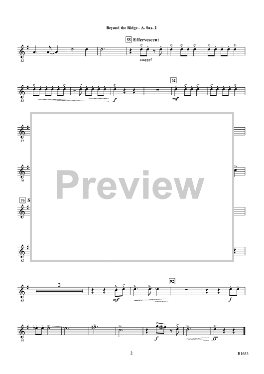 Digital Sheet Music for Beyond the Ridge - Eb Alto Sax 2 by Chris Ozley scored for Concert Band; id:454955