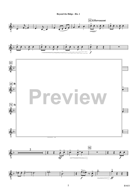 Digital Sheet Music for Beyond the Ridge - F Horn 1 by Chris Ozley scored for Concert Band; id:454961