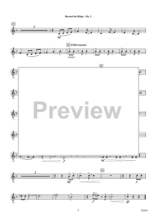Digital Sheet Music for Beyond the Ridge - F Horn 2 by Chris Ozley scored for Concert Band; id:454962