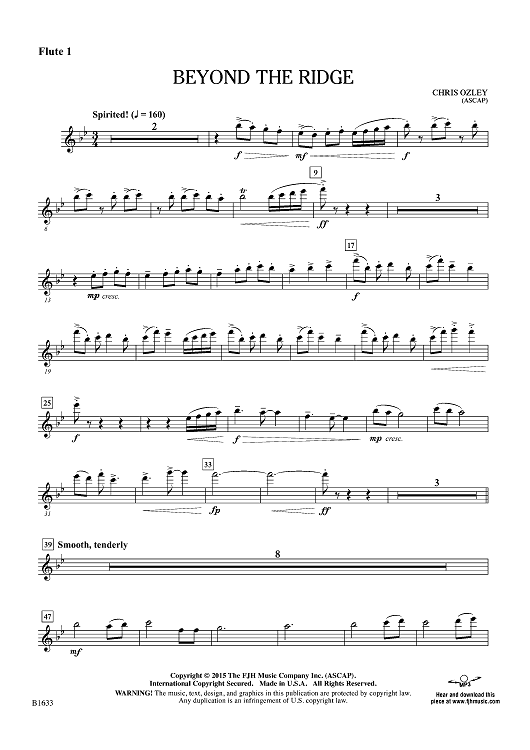 Digital Sheet Music for Beyond the Ridge - Flute 1 by Chris Ozley scored for Concert Band; id:454946
