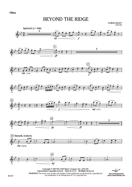 Digital Sheet Music for Beyond the Ridge - Oboe by Chris Ozley scored for Concert Band; id:454948
