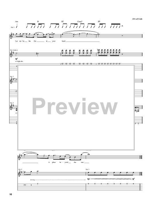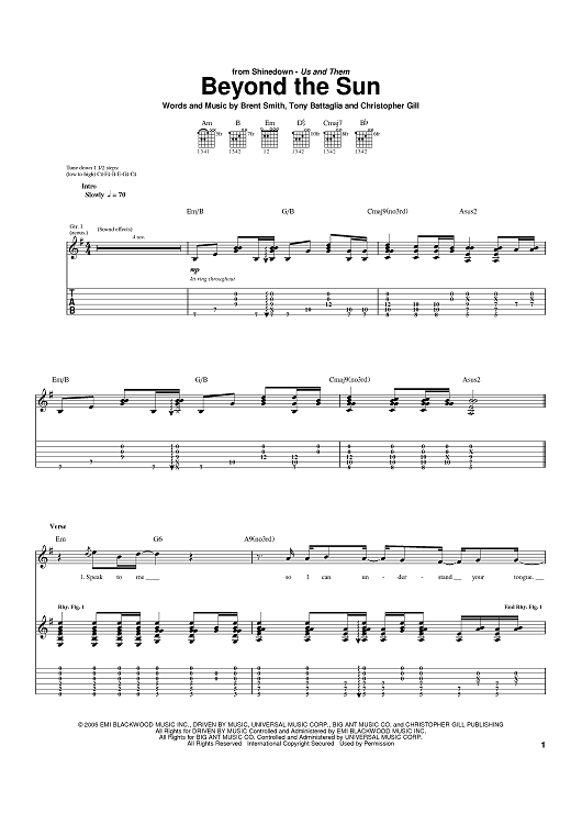 Digital Sheet Music for Beyond The Sun by Tony Battaglia, Christopher Gill, Shinedown, Brent Smith scored for Guitar Tab; id:392354