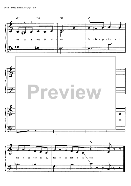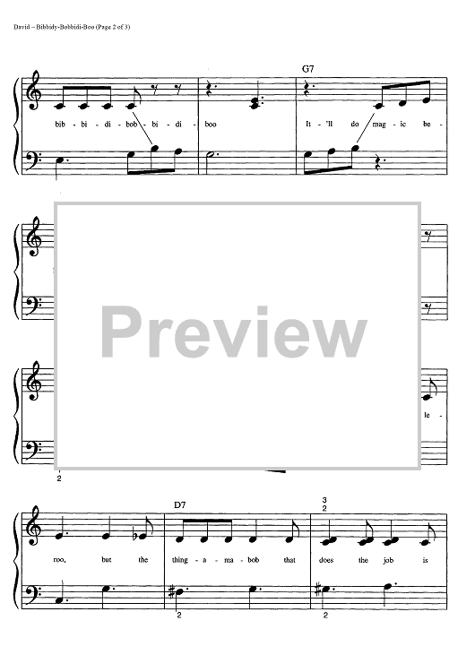 Digital Sheet Music for Bibbidi-Bobbidi-Boo (The Magic Song) by Jerry Livingston, Mack David, Al Hoffman scored for Big Note Piano; id:445003