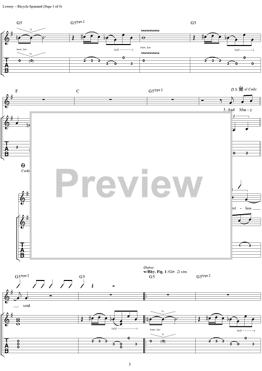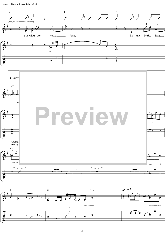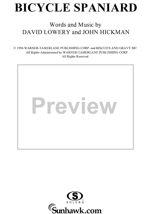 Digital Sheet Music for Bicycle Spaniard by John Hickman, David Lowery, Cracker scored for Guitar Tab/Vocal; id:114039