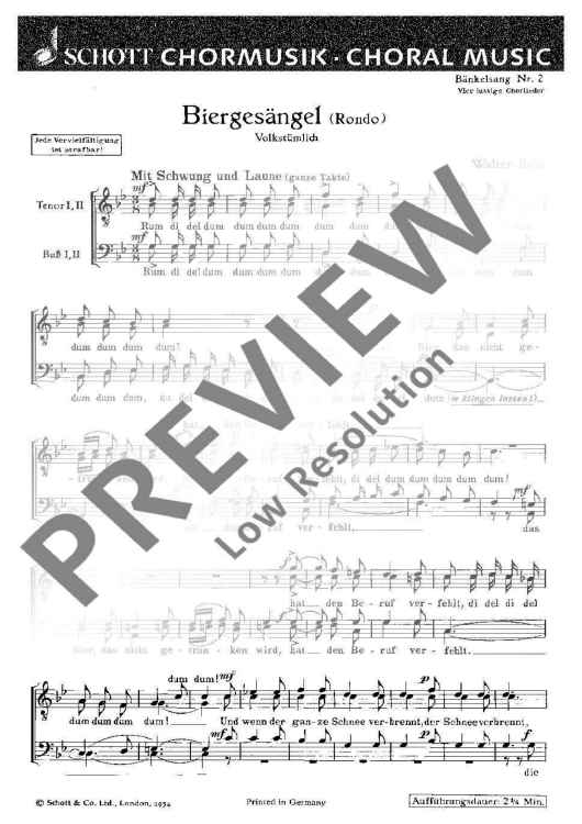 Digital Sheet Music for Biergesängel - Choral Score by Walter Rein scored for Men's Choir; id:479754