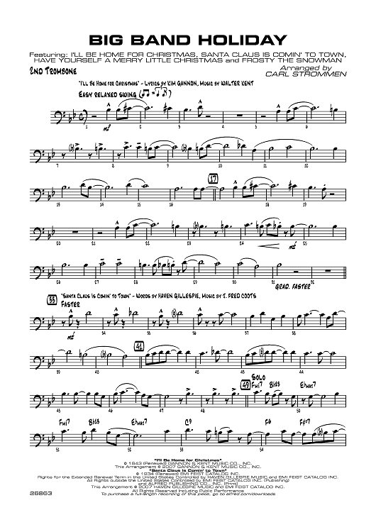 Digital Sheet Music for Big Band Holiday - Trombone 2 by Various, Carl Strommen scored for Jazz Ensemble; id:366695