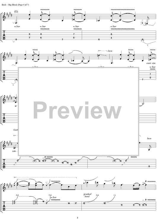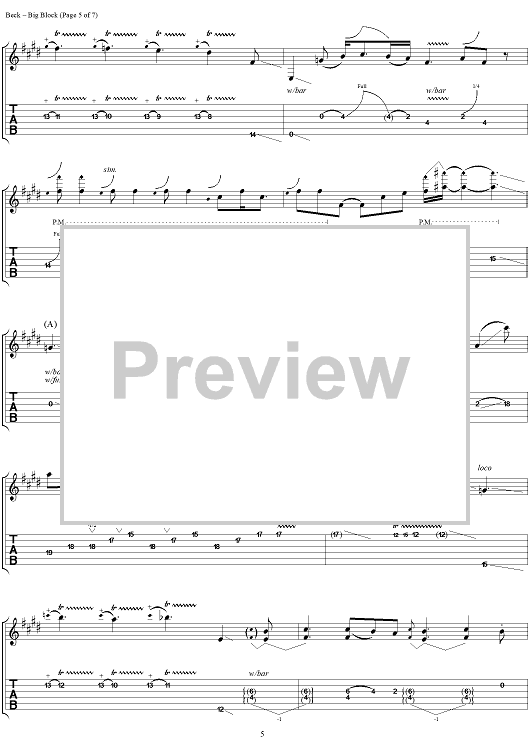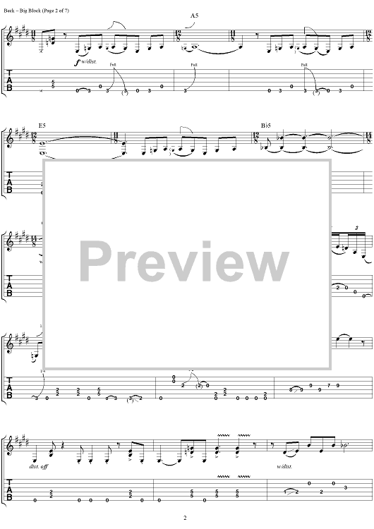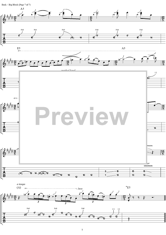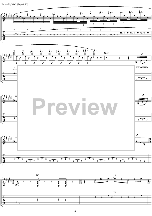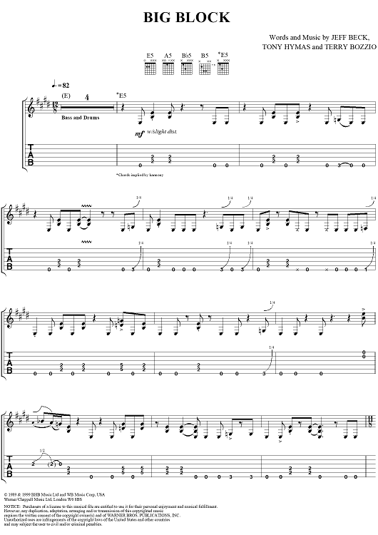 Digital Sheet Music for Big Block by Jeff Beck, Terry Bozzio, Tony Hymas scored for Guitar Tab; id:275747