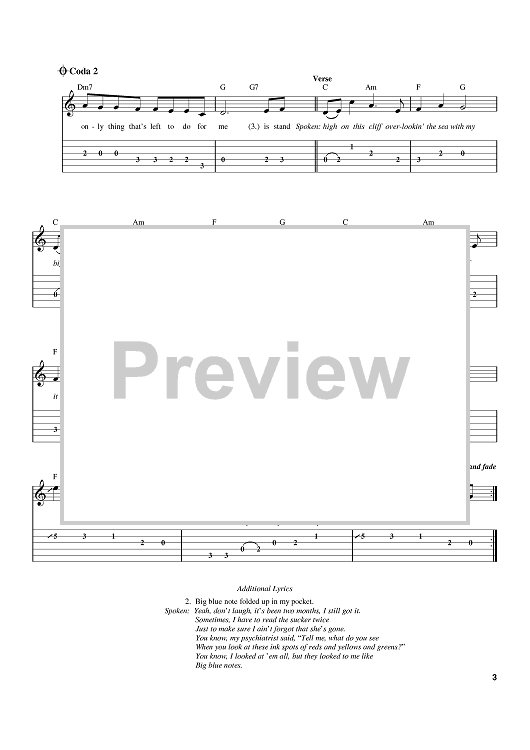 Digital Sheet Music for Big Blue Note by Scott Emerick, Toby Keith scored for Easy Guitar Tab; id:388992